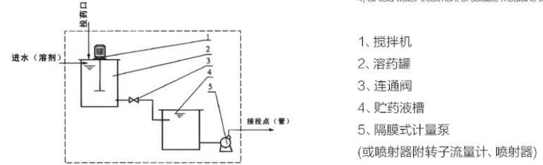 1、在水處理中投加混凝劑、消毒液、酸堿液。