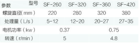 工作原理及構造:利用螺旋旋轉的軸向推移,將砂逐漸推至出口處,掉入車 中,完成砂水分離過程。螺旋砂水分離器主要由驅動裝置、U 型槽,螺旋體,水箱,襯條等組成。