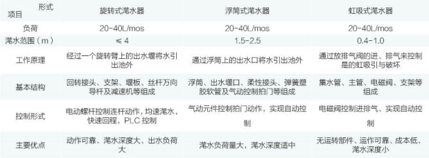 選擇潷水器三要素:池形面積-S(m2)5/h,出水量-Q(m),      潷水深度-△H(m)